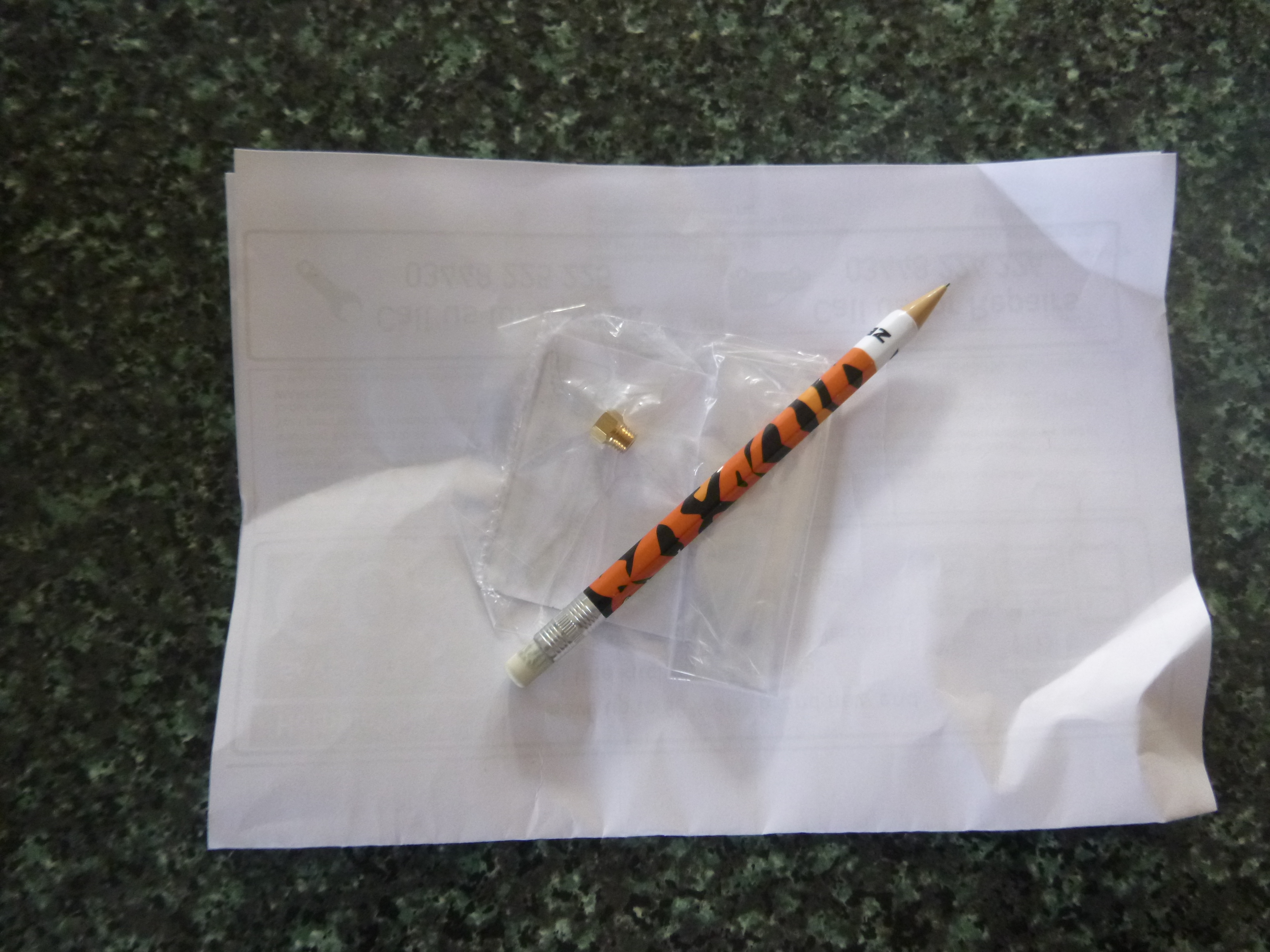 in the envelope was a folded piece of A4 paper, and a little plastic bag containing a tiny brass nozzle. I don't know why it couldn't have been put in a normal sized envelope - so much for cutting down on plastic waste