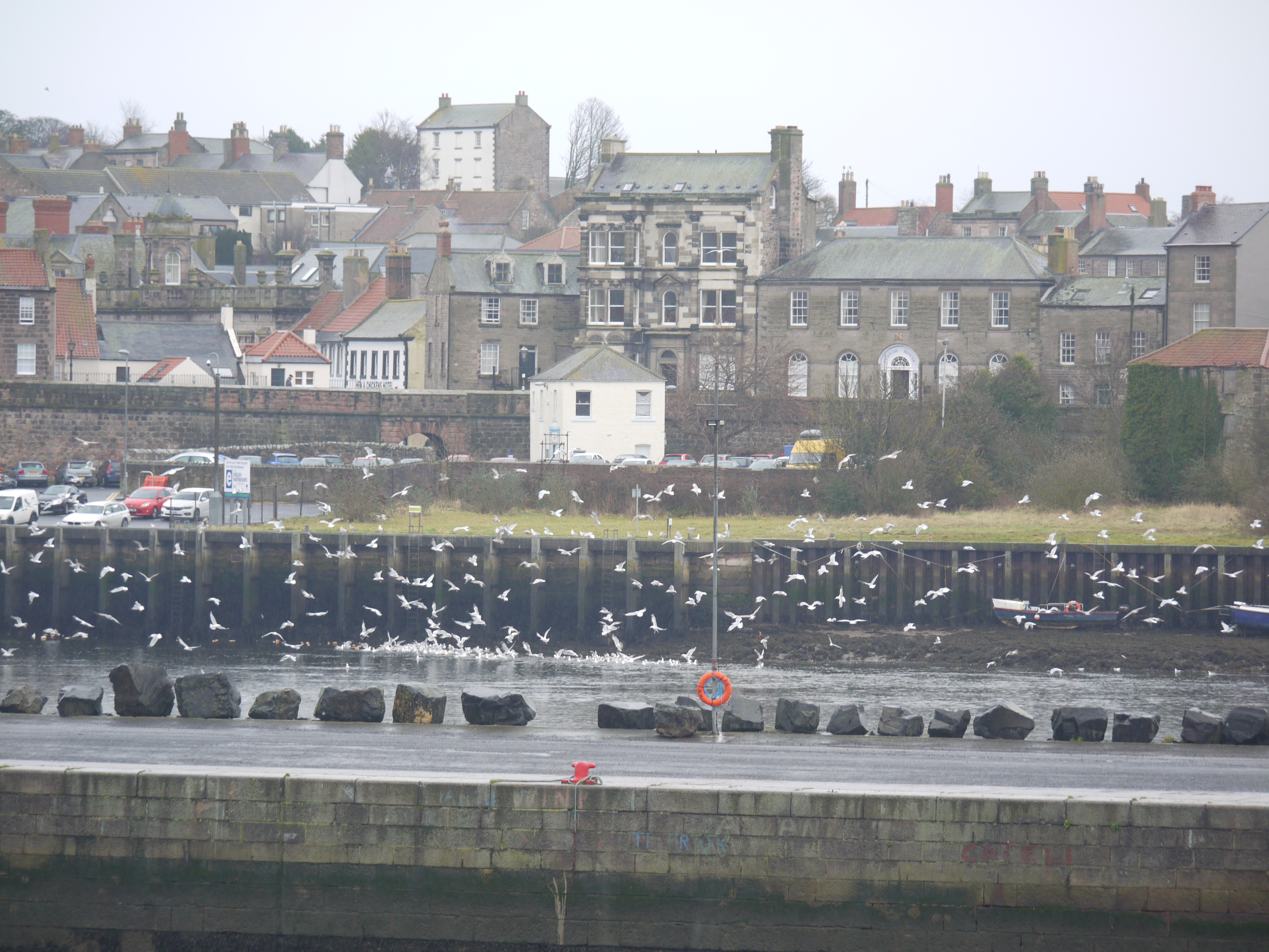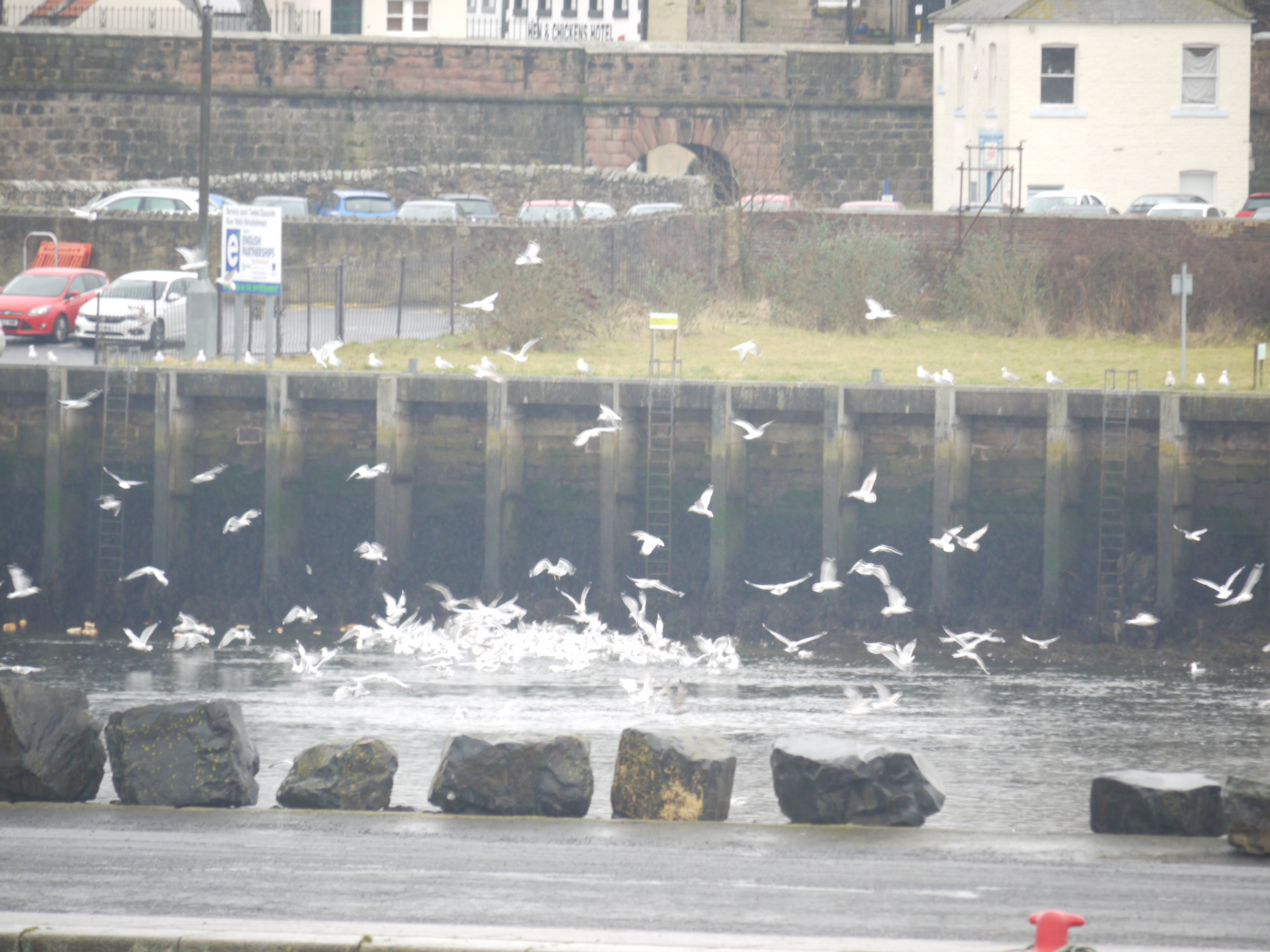 so, on to the weekend. It rained all day on Saturday in Berwick - not showers, just constant rain. However, you don't have to go out to take photos - I took these through the window! Out on the river beyond the dock, dozens of seagulls were diving into the water