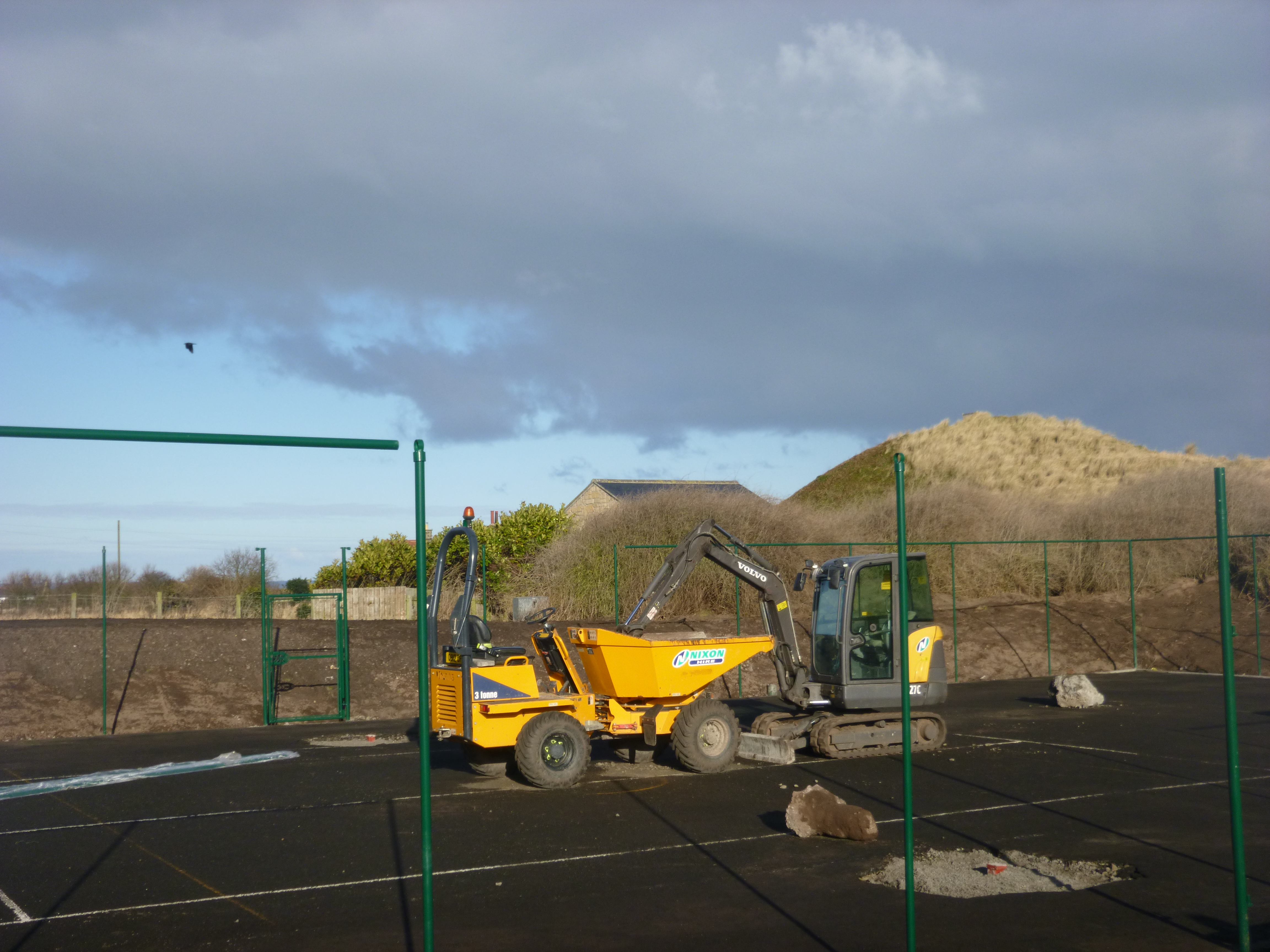 the tennis court is being refurbished - Malcolm wouldn't let me play with the machines!