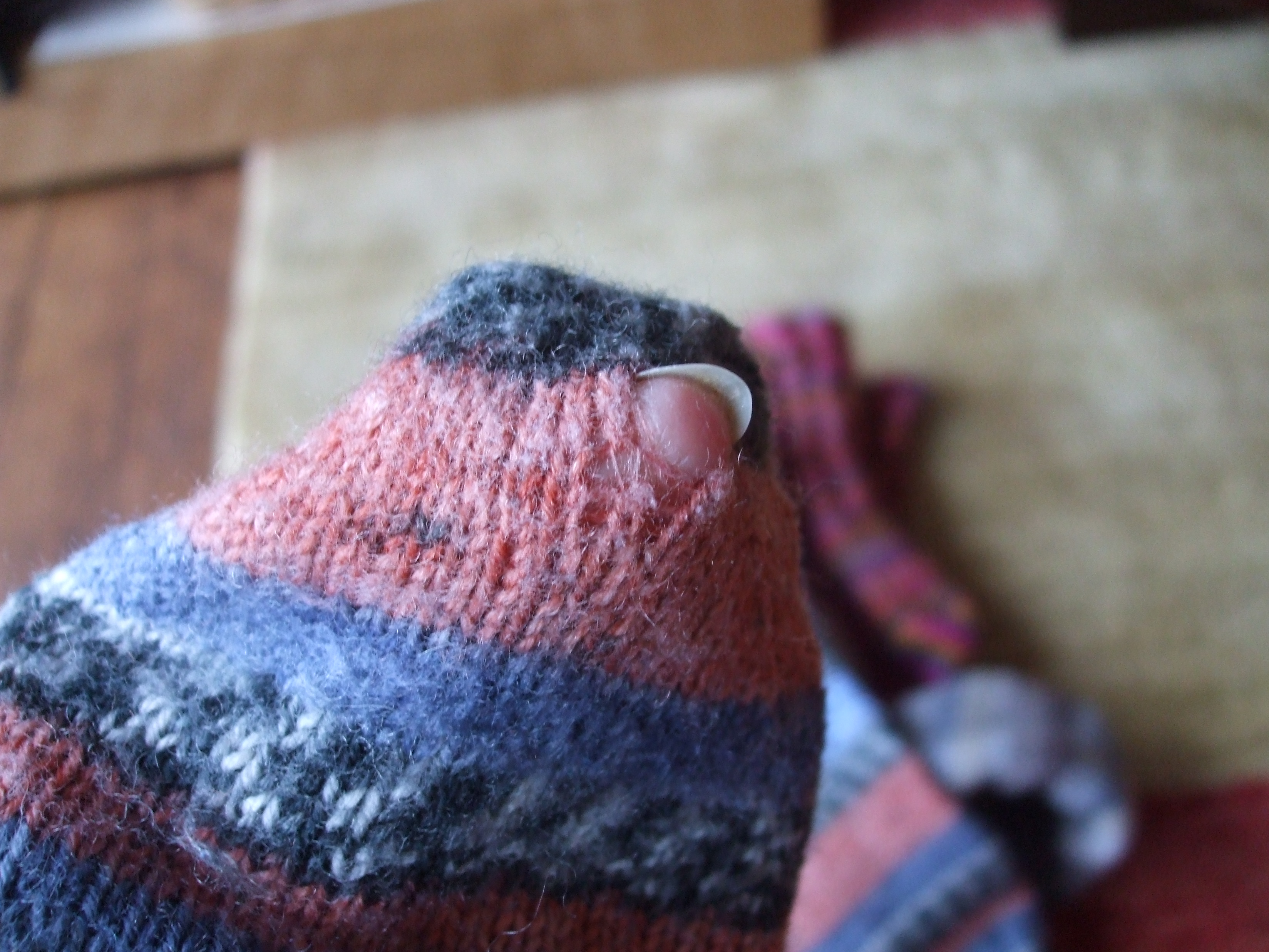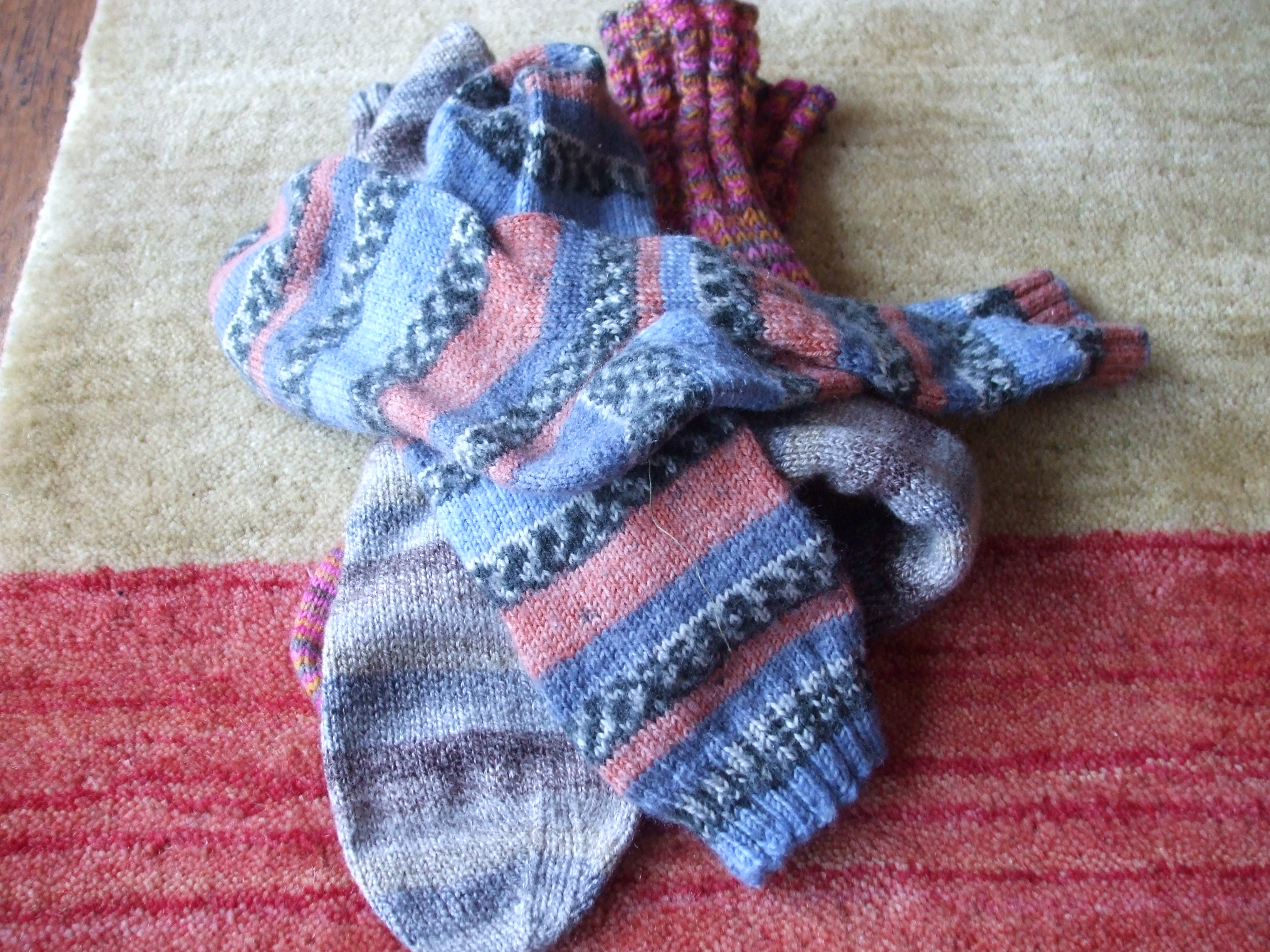 ....... the holes in the toes to be darned. I knitted this pair four years ago. They have been washed so often they are almost felted!