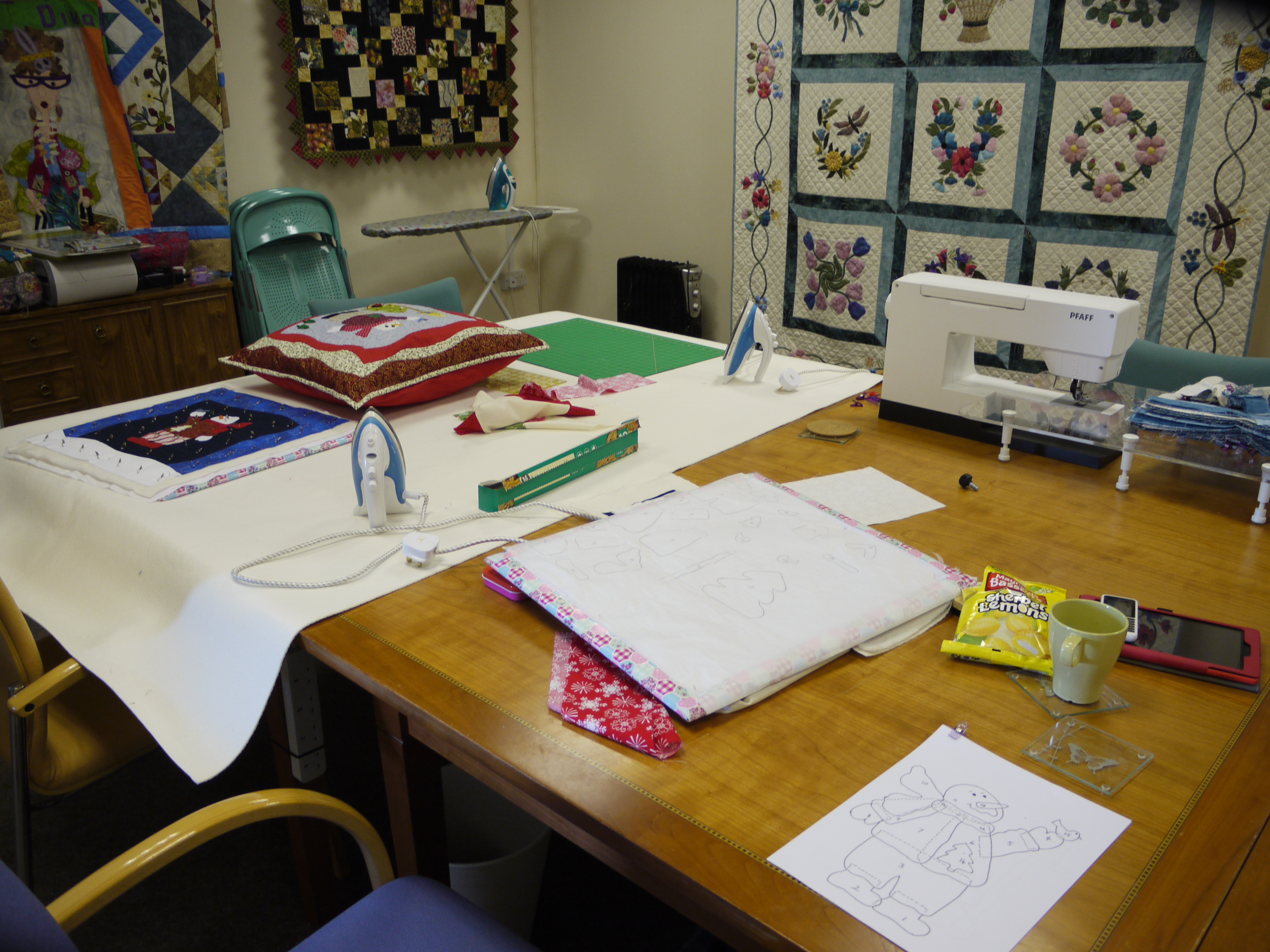 unfortunately I wasn't paying attention, and put the top heart the opposite way up to the pattern - oops! The other ladies thought it would look ok with the addition of a star on the top, but I have plenty of fabric, so I might make another one