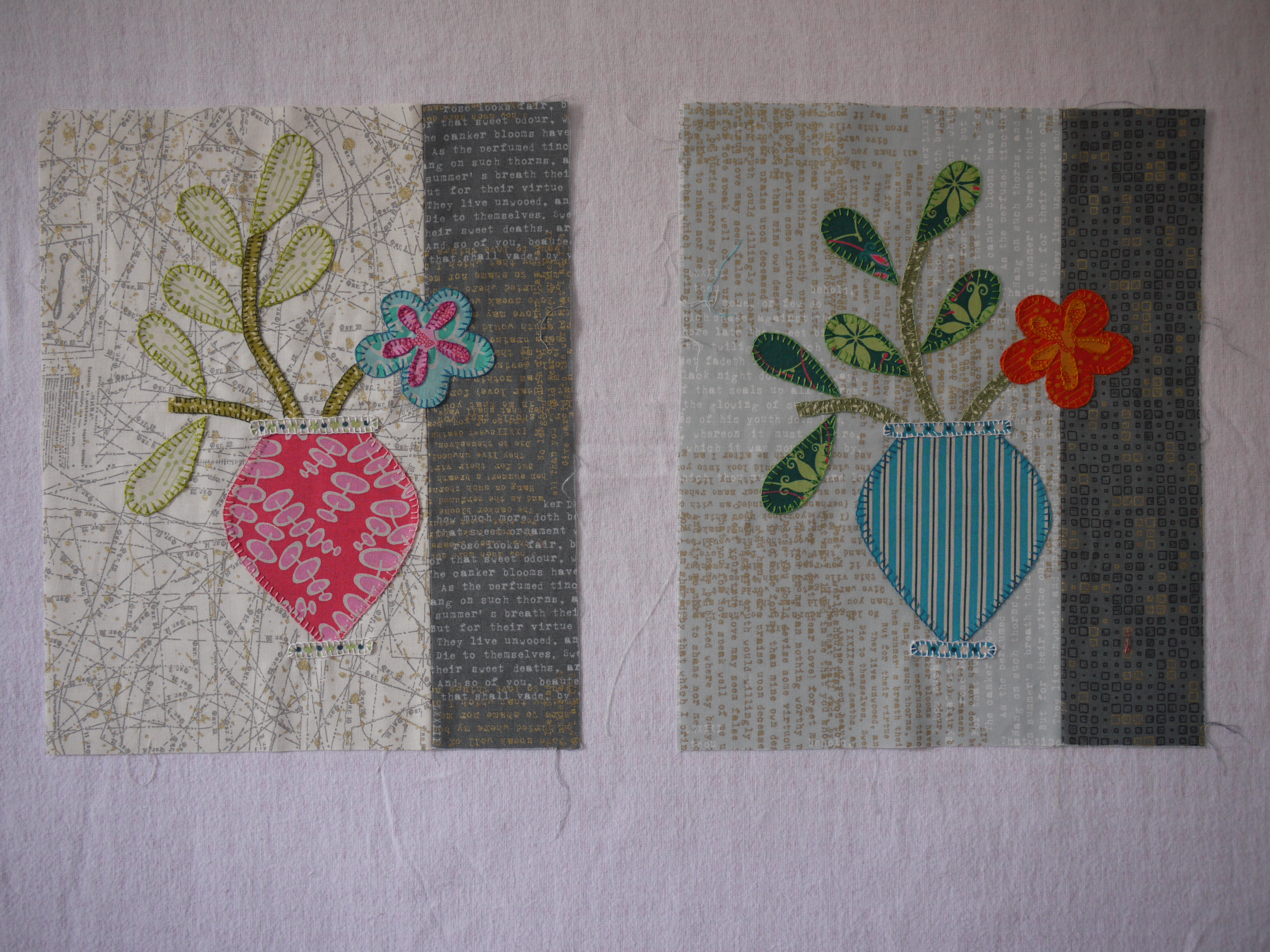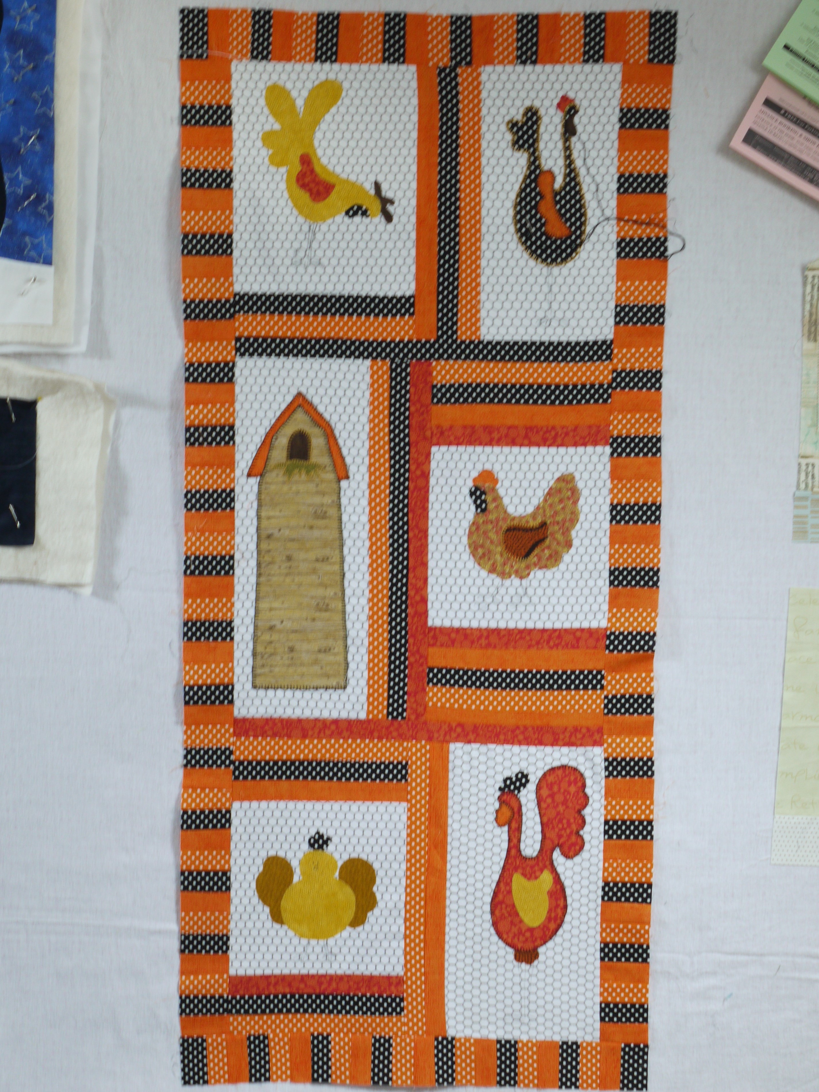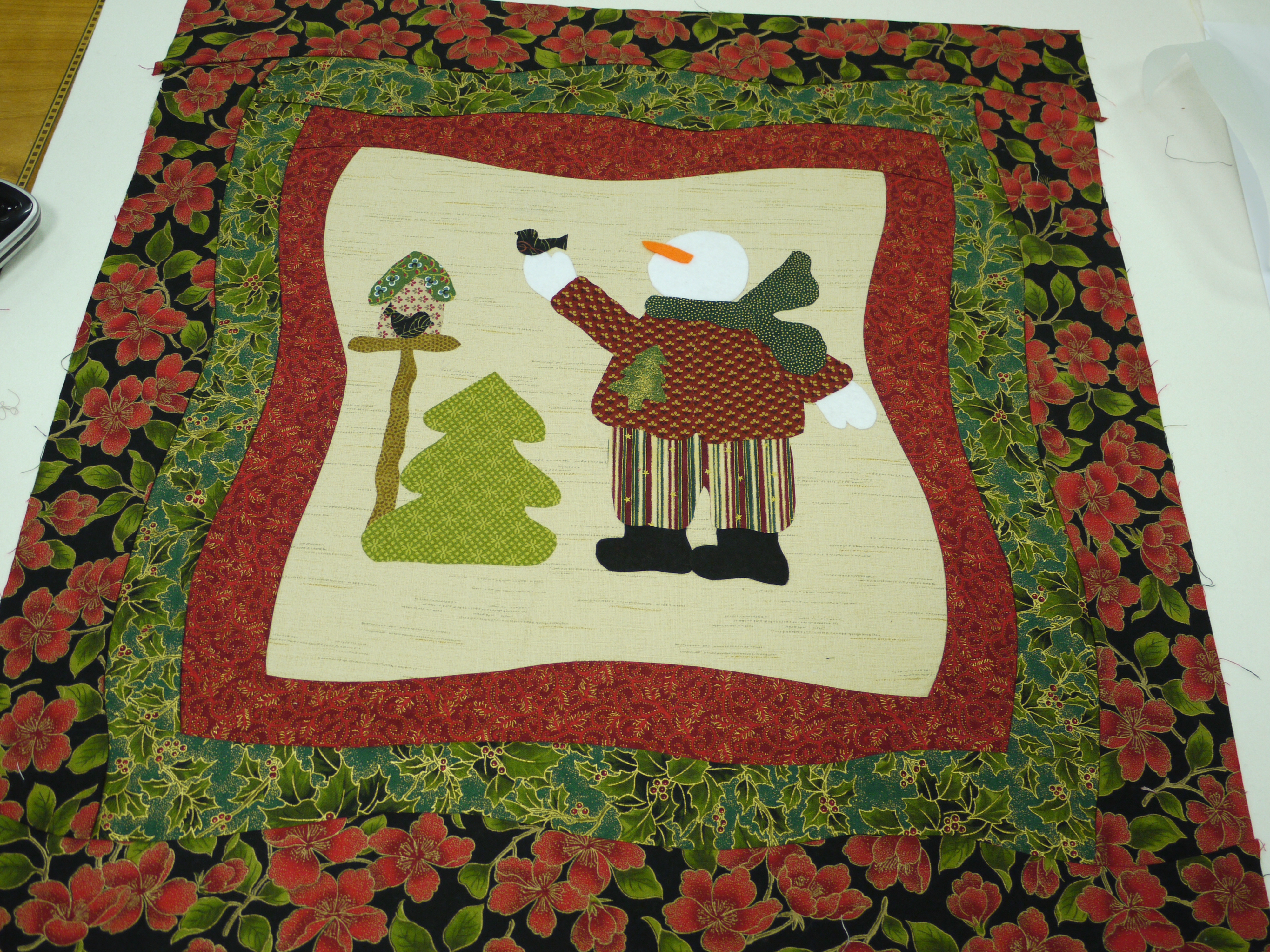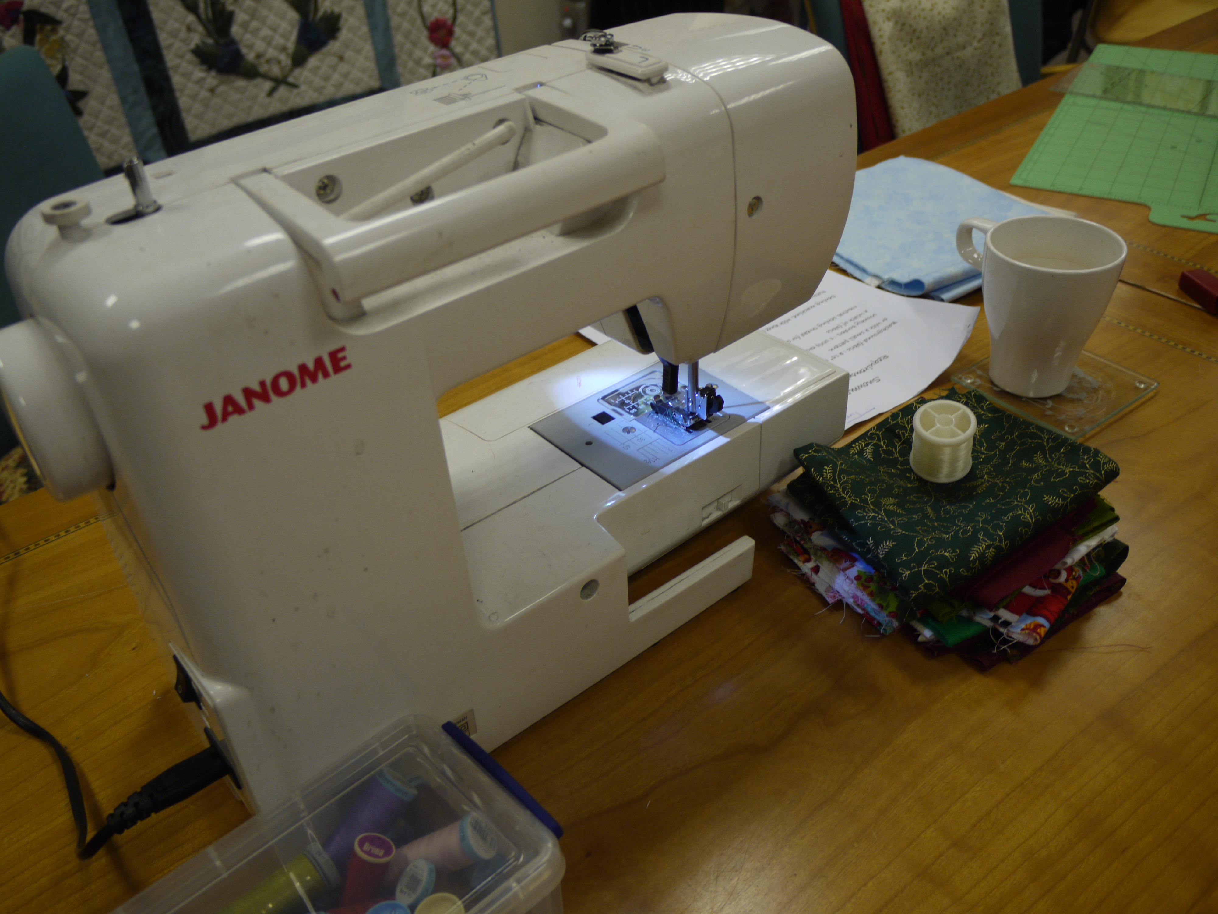 working a zigzag stitch round the edges. There is another class next month, so we have to finish our blocks, ready to add the sashing and borders