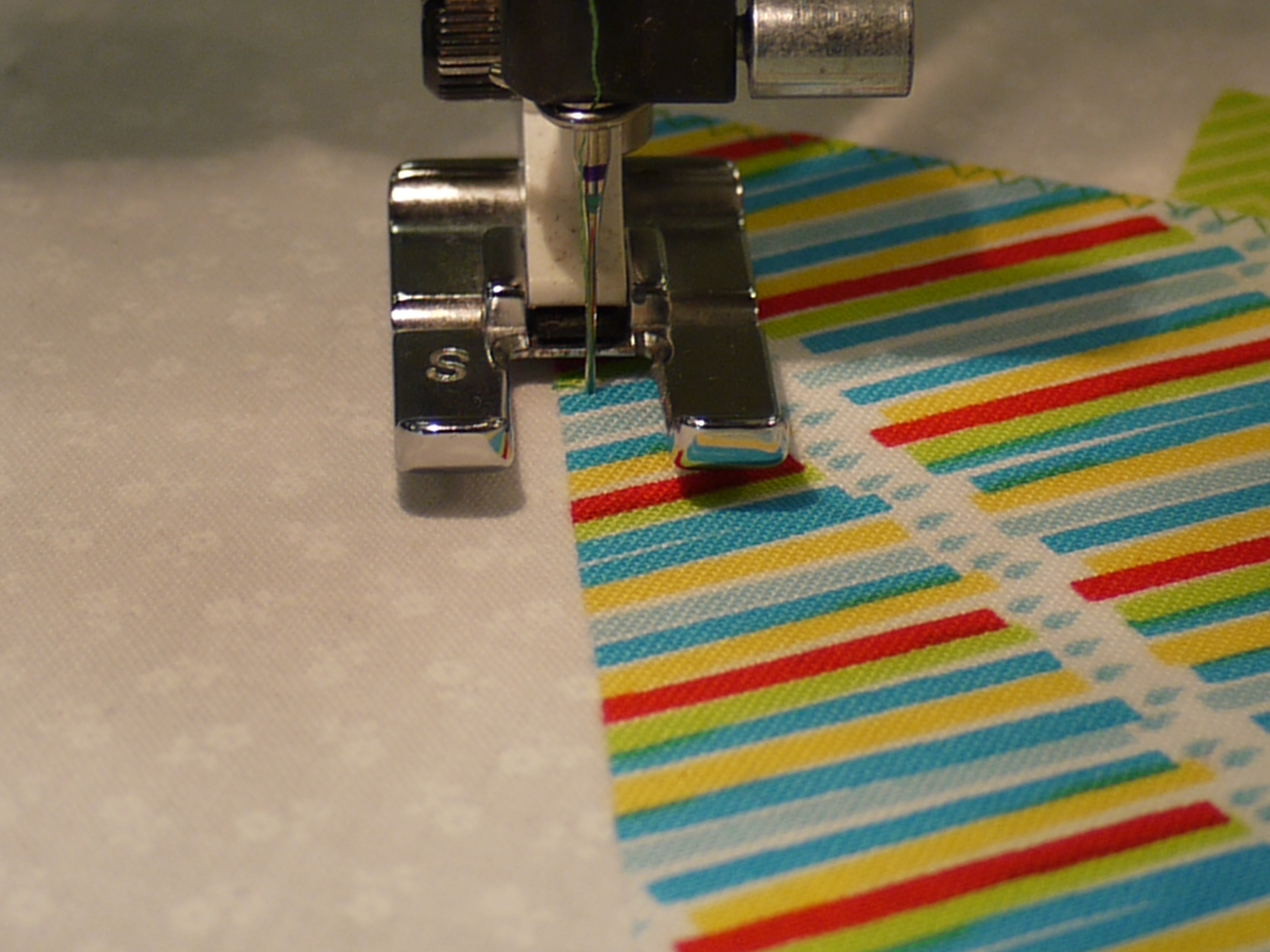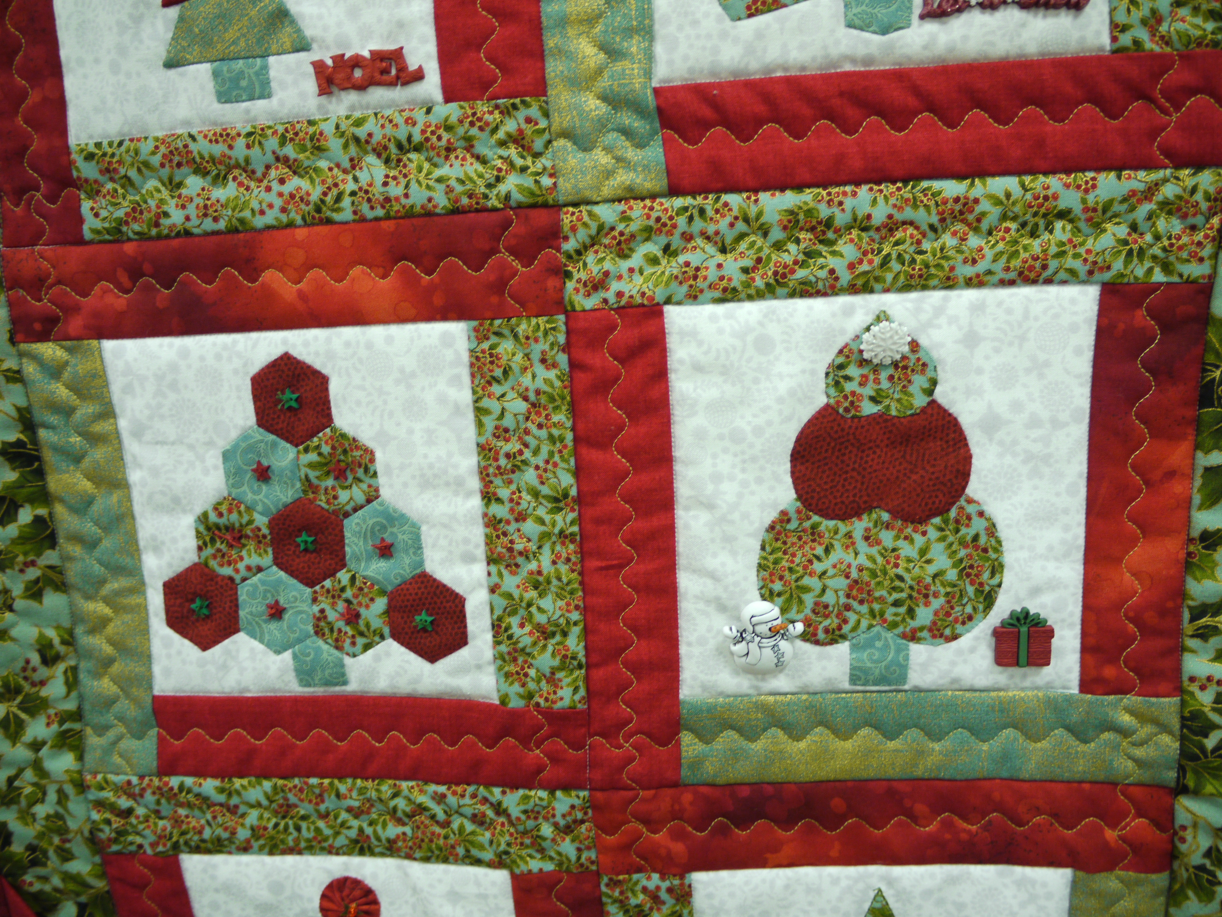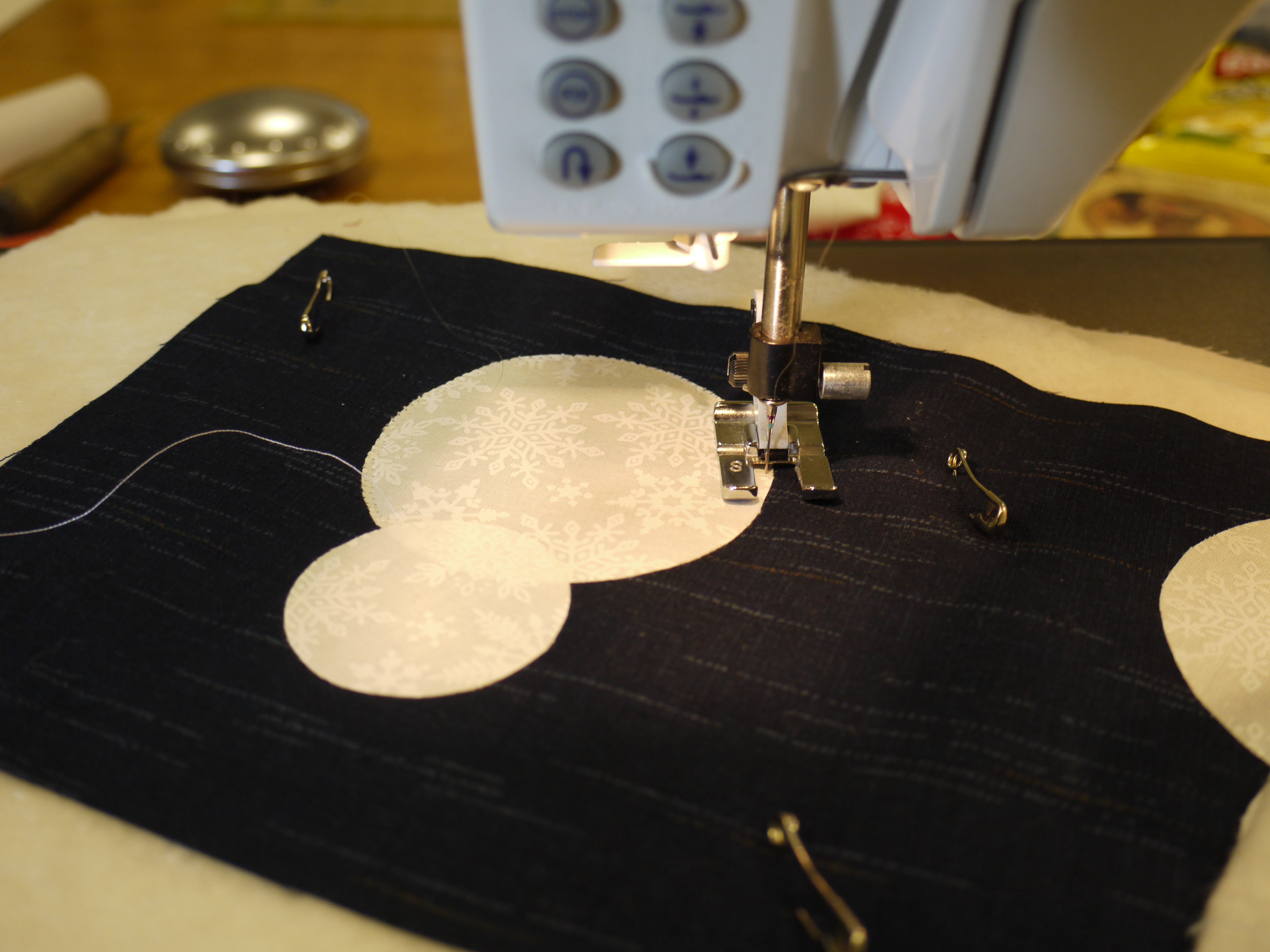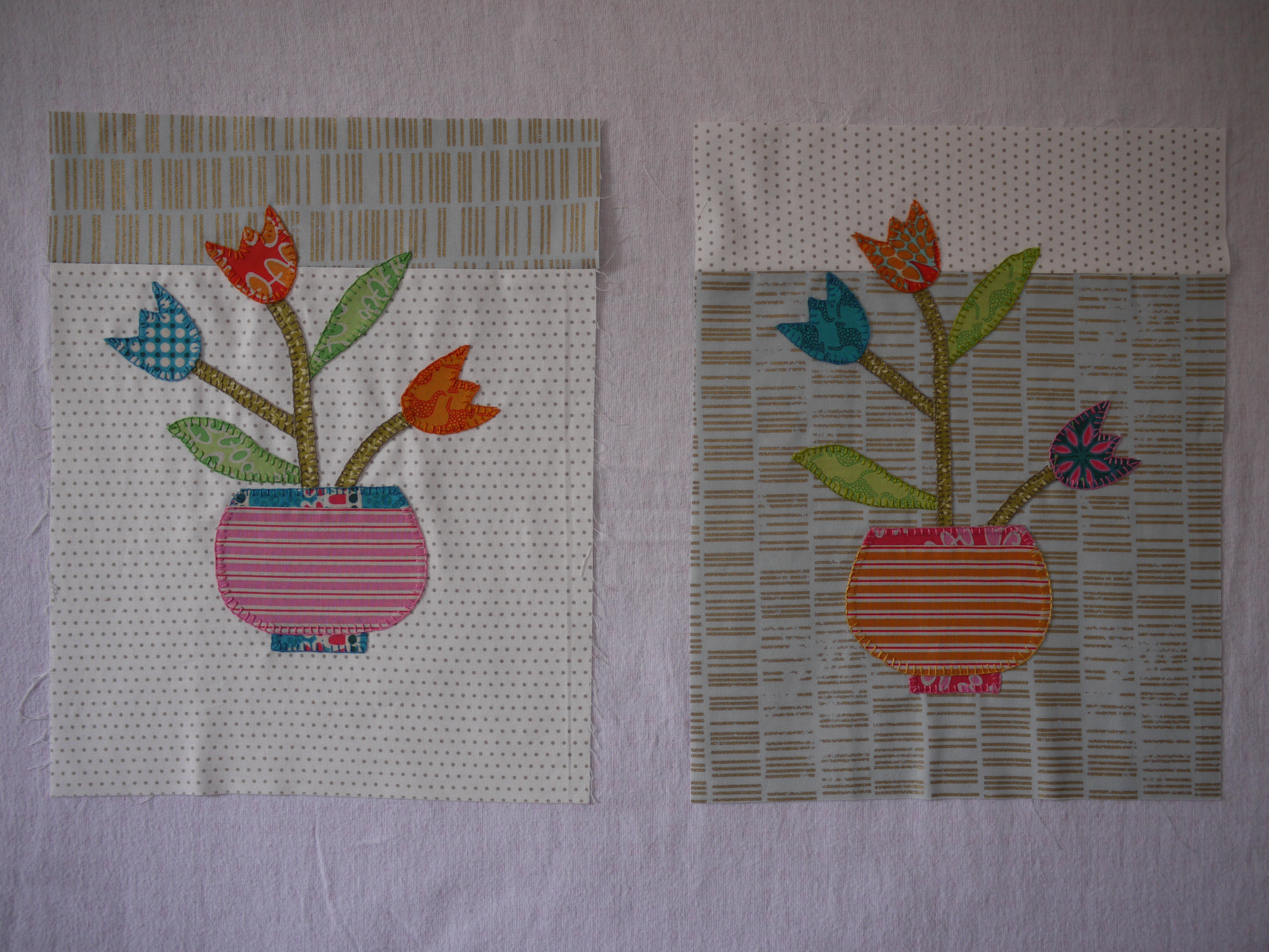 working a zigzag stitch round the edges. There is another class next month, so we have to finish our blocks, ready to add the sashing and borders