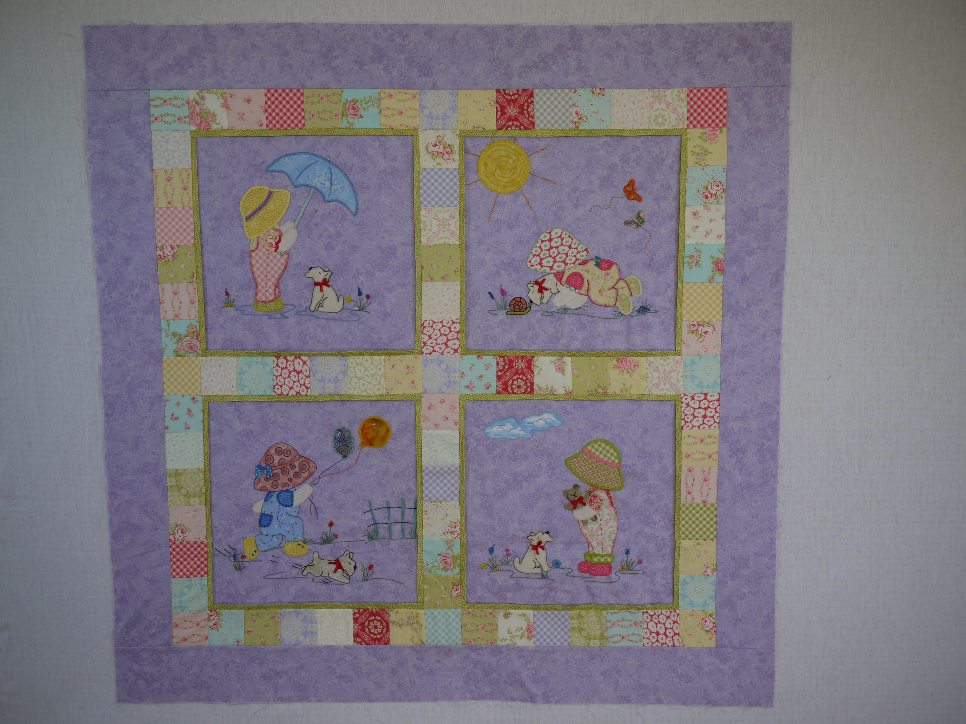 On Saturday, I headed off down the A1 to The Quilt Shop, ready for a day of fun! The wonderful Lucie had designed this wonderful whimsical wallhanging for us to sew (the photos are used with Lucie's permission)