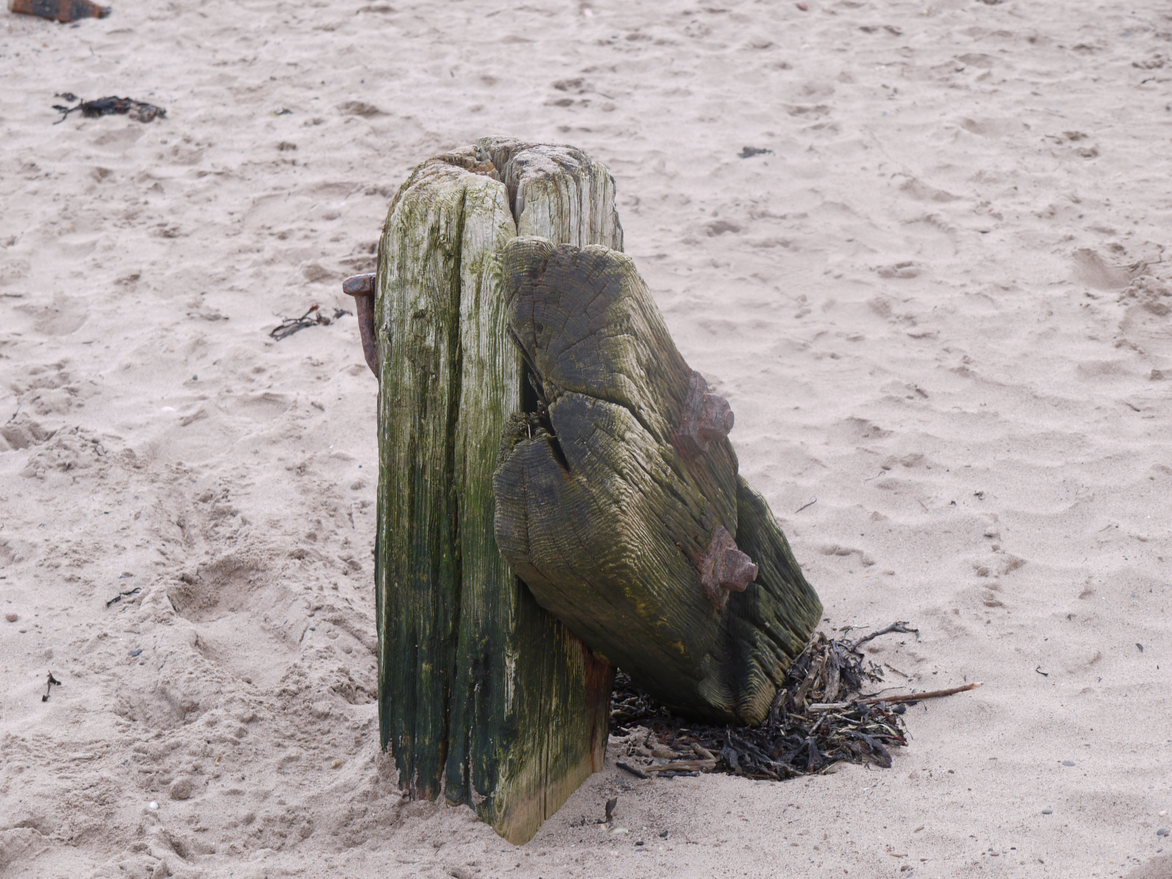 yesterday morning we went up to the flat, and as the weather was reasonable, we went for a walk on the beach. The sand has moved again, so that this wooden post now only comes up to my hip, whereas last year it was above head height!
